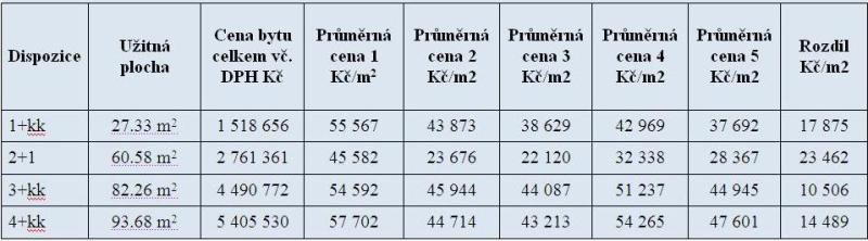 Průměrná cena 4: Cena pouze za byt s DPH (bez ceny za