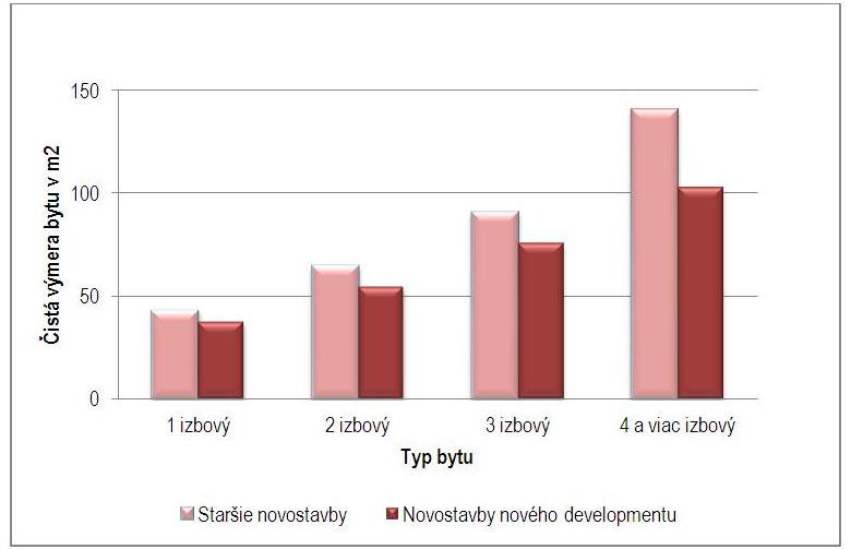 Graf 2 – Porovnanie priemernej čistej výmery bytu v Bratislave podľa typu bytu