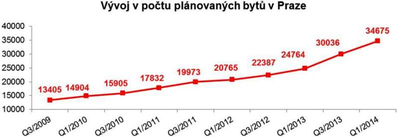 Počet plánovaných bytů se v Praze v druhé polovině minulého roku zvedl o zhruba 15 %. V porovnání se stavem před čtyři roky se ale zvýšil o neuvěřitelných 133 %. Některé projekty se přitom mezitím již zrealizovaly nebo alespoň začaly prodávat (a celkovou sumu plánovaných bytů tím pádem snížily), skutečný nárůst plánovaných projektů je tedy ve skutečnosti ještě vyšší.