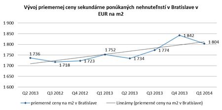 Priemerná cena voľných bytov v novostavbách sa ustálila na úrovni 1 776 EUR za m2 bez DPH, čo je o 7 EUR menej, ako pred štvrťrokom. Pokles je spôsobený prílevom bytov v nových projektoch, ktoré v silnom konkurenčnom boji lákajú klienta v prvom rade na výhodnú cenu. Pokles ceny je spôsobený aj tým, že sa na trh dostáva viac štartovacích bytov a ďalším faktorom, ktorý mal vplyv na zníženie priemernej ceny bytov sú dopredajové, prípadne časovo obmedzené akciové ceny.