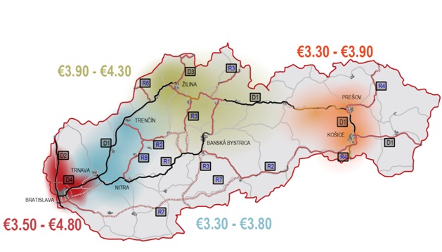 Cenové rozpätie nájmov v jednotlivých krajoch Slovenska: