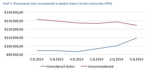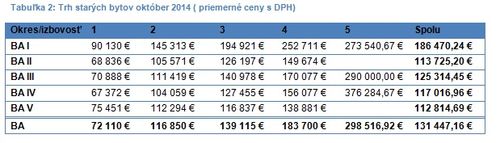 Staré byty sa v absolútnom cenovom vyjadrení postupne približujú k novostavbám. Ich ceny totiž k októbru 2014 vzrástli v absolútnom vyjadrení medziročne o 15,5 %, medzikvartálne o 9,2 % a v priemere vo vyjadrení na meter štvorcový vzrástli ceny starých bytov medziročne o 4 %. Rast cien ovplyvňujú ponuky starých bytov z predkrízových a krízových rokoch 2006 – 2009, kedy boli ich ceny na trhu premrštené. Ich majitelia však dnes očakávajú podobné a vyššie sumy, ako za ne dali oni.