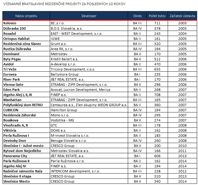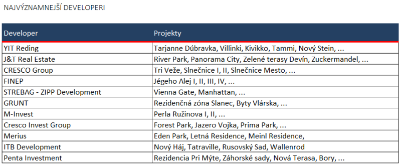 NAJVÝZNAMNEJŠÍ DEVELOPERI