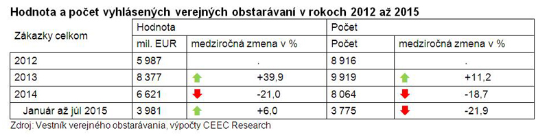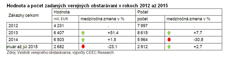 Zákazky za rekordné hodnoty vyhlásili verejní obstarávatelia, obstarávatelia a subjekty, ktorým bola poskytnutá dotácia v júli tohto roka. Subjekty naplánovali investície v celkovej hodnote 1 369 miliónov EUR, čo je najviac od polovice roka 2013. Vyplýva to z najnovšej analýzy analytickej spoločnosti CEEC Research vypočítanej na základe údajov poskytnutých Úradom pre verejné obstarávanie ku koncu júla 2015.