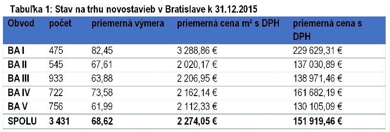 Pozitívna nálada na rezidenčnom trhu novostavieb v Bratislave pokračovala aj poslednom kvartáli roka 2015. Na trh pribúdajú nové projekty a dopyt po nehnuteľnostiach je v porovnaní z predchádzajúcimi siedmimi rokmi stále vysoký. Cena voľných bytov tak kontinuálne rástla po celý rok 2015.