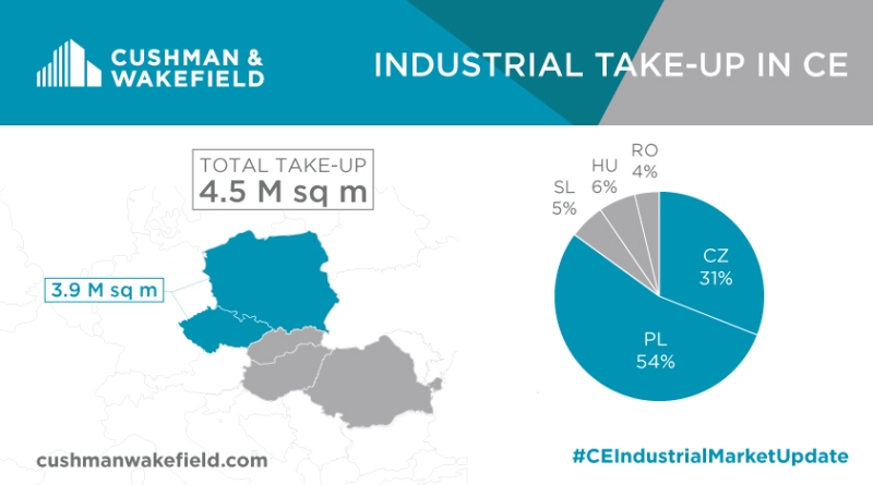V strednej Európe dnes existuje takmer dvadsať miliónov metrov štvorcových moderných priemyselných plôch k prenájmu. Záujem zo strany nájomcov je tak silný, že podiel voľných plôch klesol na historické minimum 5,7 percenta. Pre porovnanie – podiel voľných kancelárií je dvojnásobný (12 percent). Vyplýva to zo zistenia spoločnosti Cushman & Wakefield, ktorá trh priemyselných nehnuteľností na Slovensku, v Českej republike, Poľsku, Maďarsku a Rumunsku dlhodobo sleduje.