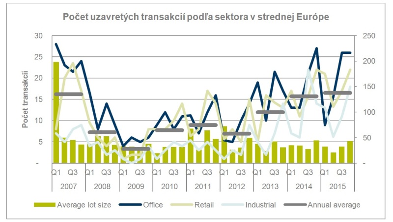Podľa Cushman & Wakefield sa investičné aktivity na hlavných stredoeurópskych trhoch: v Poľsku, Česku, Slovensku, Maďarsku a Rumunsku výrazne zvýšili v 4. kvartáli 2015 na 3,16 miliárd €, prekonávajúc rekordné úrovne z roku 2006 majúc veľký náskok pred 1,89 miliardami € investovanými v 3. kvartáli 2015 . Celkovo bolo na stredoeurópskych trhoch v roku 2015 investovaných 7,37 miliárd €, čo je len o niečo viac ako v roku 2014 (7,34 mld eur).