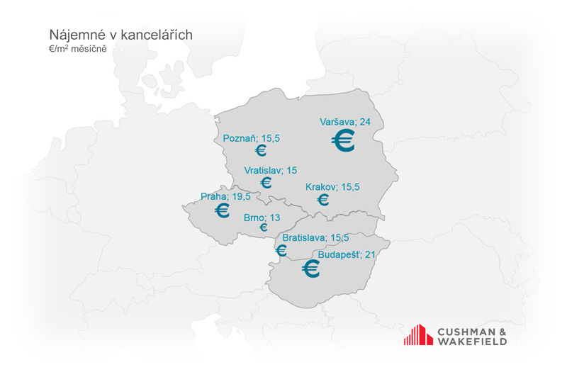 Kancelářské nájemné v regionu střední Evropy