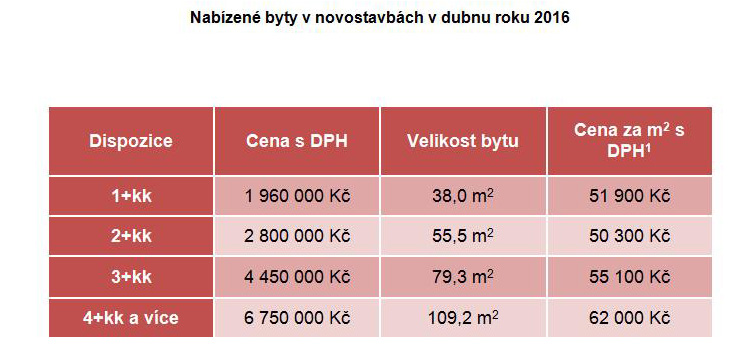Nabízené byty v novostavbách v dubnu roku 2016