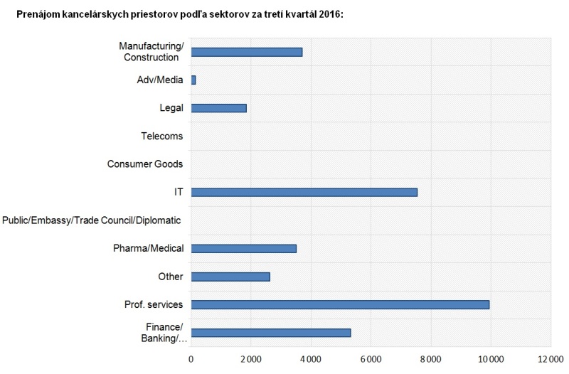 V 3. kvartáli 2016 bola najväčšia zaznamenaná transakcia na trhu prenájmu kancelárskych priestorov vo výmere 4 632 m². Okrem tejto transakcie boli zaznamenané ešte ďalšie tri, ktoré presiahli výmeru 2 000 m² a osem transakcií s veľkosťou 1 000 – 2 000 m².