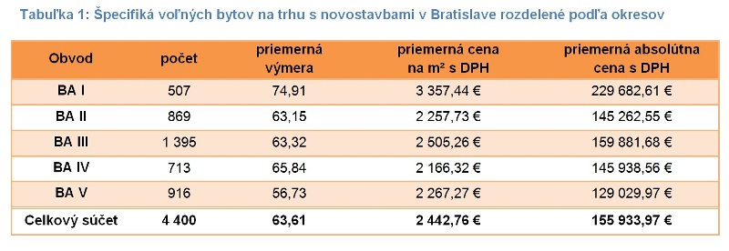 Z cenového hľadiska došlo pri voľných novostavbách k pokračovaniu rastu. Ich cena za Bratislavu ako celok stúpla na 2 442,76 eur/m² s DPH, čo medzikvartálne predstavuje rast o 2,9% a medziročne rast až o 9,4%. Tempo rastu tak pokračuje aj napriek zvýšeniu ponuky. Za rastom stojí z veľkej časti rast ponuky bytov v treťom okrese, keďže tu ide o cenovo nadpriemerné byty.