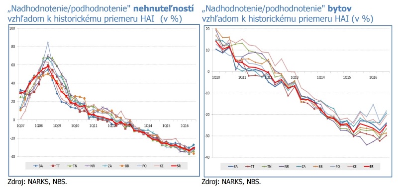 Nedostatočná kompenzácia pokračujúceho dynamického rastu priemernej ceny bytov rastom príjmov je výraznejšia ako v prípade rastúcej celkovej priemernej ceny bývania. Teda zmenšovanie dostupnosti bytov je výraznejšie ako zmenšovanie dostupnosti bývania ako celku. Postupné mierne zmenšovanie dostupnosti bytov možno pozorovať už zhruba od polovice minulého roka prakticky vo všetkých slovenských krajoch. Hodnotený 3. štvrťrok 2016 tento trend potvrdzuje.