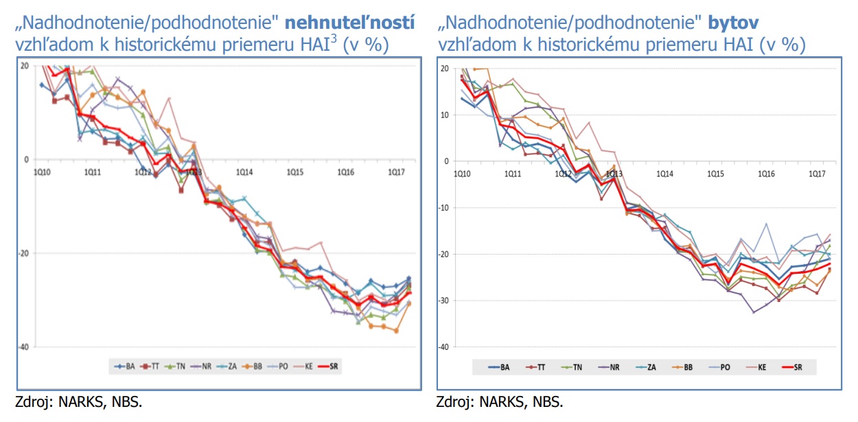 Z regionálneho pohľadu sa v 2. štvrťroku 2017 zvýšila priemerná cena bývania vo všetkých slovenských regiónoch. Medziročne najvýraznejšie rástla priemerná cena bývania v Trenčianskom kraji (o 15,9 %) a najmenej v Banskobystrickom kraji (o 4,6 %). K miernemu zníženiu medziročného rastu priemernej ceny bývania za celé Slovensko prispelo hlavne spomalenie medziročného rastu v Bratislavskom kraji a v Žilinskom kraji. K miernemu spomaleniu medzištvrťročného aj medziročného rastu priemernej ceny bývania došlo aj v Nitrianskom kraji.