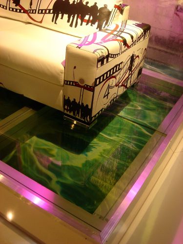 modernistickými krištáľovými lustrami, ktoré bolo takisto vidieť aj
